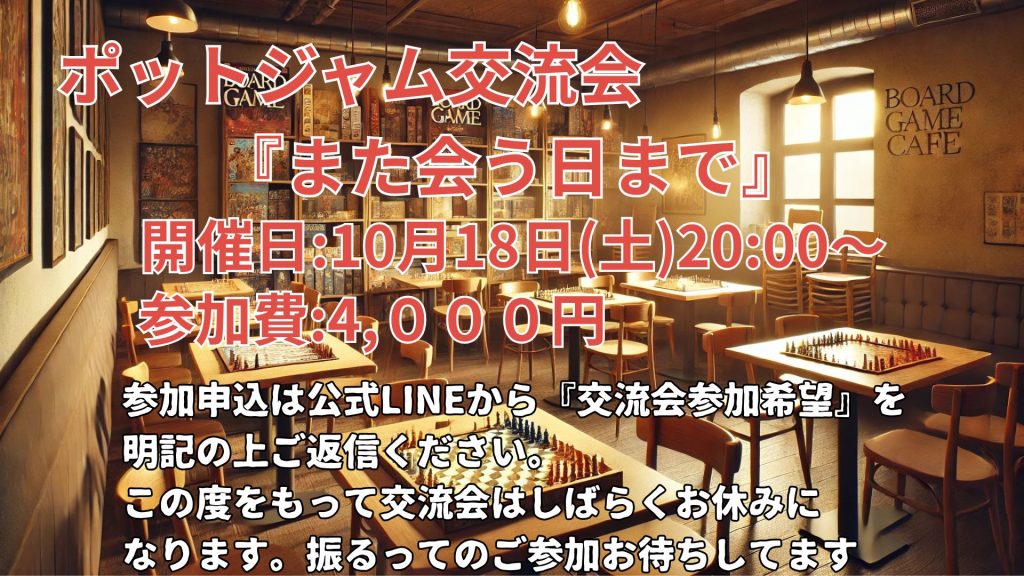 交流会は10月をもちまして、しばらくの間お休みとなります。また皆様で集まれる機会を熟考し募ることができますよう精進し続けたく存じます